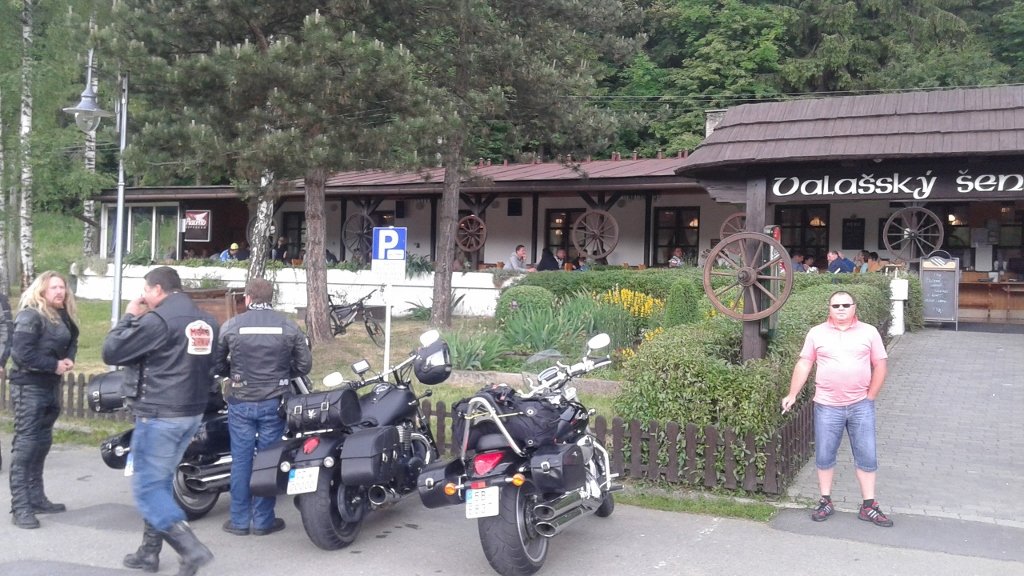 Cestu zpět jsme zase trošku zpestřili a vybrali trošku jinou pozměněnou trasu, tentokrát přes hraniční přechod Makov (SR) – Horní Bečva, opět příjemný moto kopec. Obědová zastávka ve vyhlášené restauraci Zavadilka v obci Prostřední Bečva. Nutno říct, že i v 13.30 bylo v restauraci a na terase ohromné množství lidí, opravdu asi vyhlášená kuchyně. Mělo to jednu zásadní chybu, na oběd jsme čekali skoro hodinu.