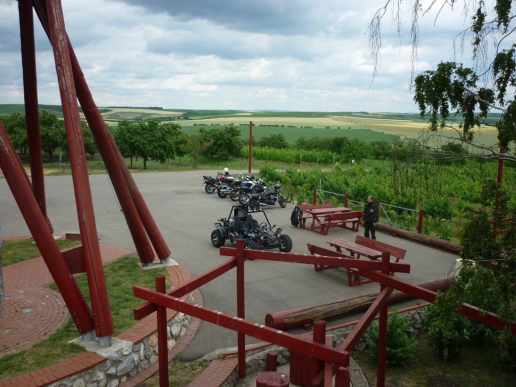 Letní výlet cestou necestou do Lednice na Moravě, stavili jsme se na Rozhledně Slunečná mezi Velkými Pavlovicemi a Bořeticemi – velmi pěkný výhled, dobrá káva.