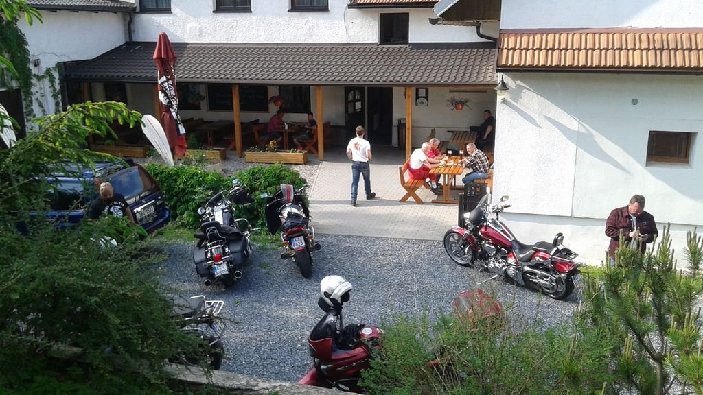 A dál…. původně jsme zamýšleli navštívit vodní nádrž Vír a její přilehlé okolí, ale Kápo v čele pelotonu nasadil velmi svižné tempo, tak jsme se nakonec dopravili na nedalekou Vysočinu (asi zase přejel nějakou odbočku). Podle dvou fotek každý pozná oblíbenou hospůdku s domácími bramboráky, které byly opravdu z brambor. Jelikož sem zavítáme každoročně není asi třeba blíže představovat.